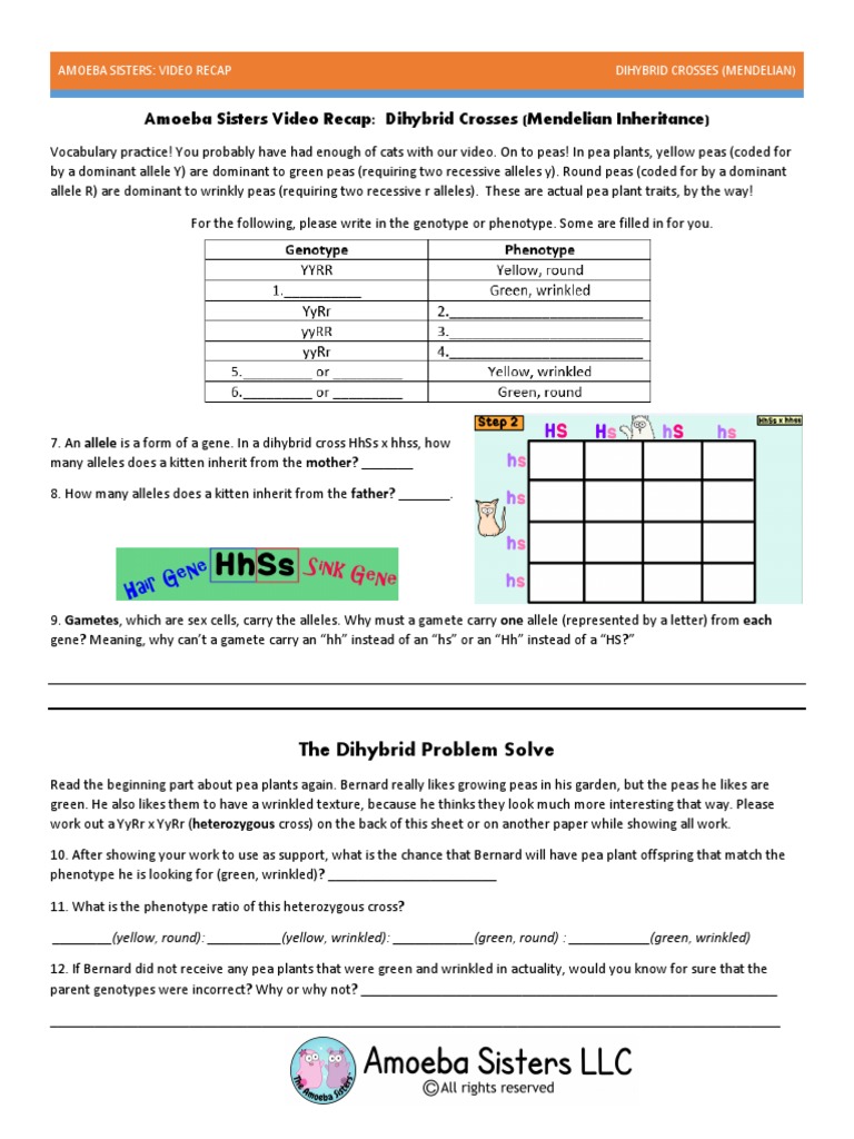 Dihybrid cross practice problems answers — villardigital dihybrid cross practice problems answers. Identify the gametes from each parent. How to answer a dihybrid cross question a female guinea pig is heterozygous for both fur colour and coat texture is crossed with a male that has light fur colour and is heterozygous for coat. A dihybrid cross determines the genotypic and phenotypic combinations of offspring for two particular genes that are the inheritance of dihybrid traits can be calculated according to the following steps This law states that alleles are transmitted to offspring independently of one another. This video will show how to set up and solve everyone's favorite 16 square punnett square. A cross between two parent reebops that are heterozygous for two traitsis called a 11 29 dihybrid cross practice answer key. Heterozygous round eyes, blue body _rryy_____ body color 2. Mendel invented the dihybrid cross to determine if different traits of pea plants, such as flower color and. If a male with the genotype: In dihybrid cross, using pea color and shape as examples. 100 genetic crosses worksheet answers from dihybrid cross worksheet answers, source:rtvcity.com. An organism of genotype aabb can make gametes of all the following 2.